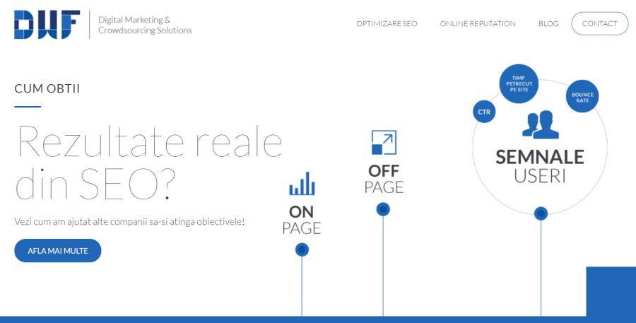 Inca de la infiintare, DWF a pastrat cu incredere directia de business asumata, dedicandu-se exclusiv formarii si perfectionarii unui pachet complet de servicii SEO, care sa poata aduce o valoare de business reala si masurabila partenerilor nostri.