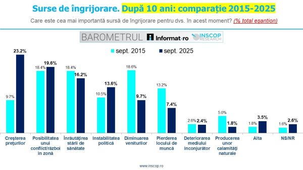 Surse de ingrijorare. Comparație după 10 ani: 2015-2025