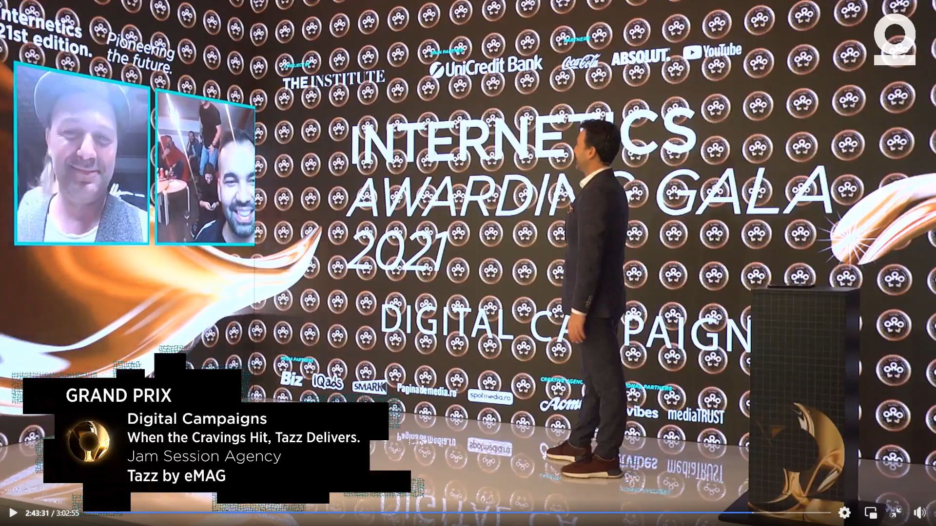 Jam Session Agency a fost desemnata Agentia Anului, castigand premii pentru lucrarile „When the cravings hit, Tazz delivers.” (Grand Prix in categoria Digital Campaigns, Gold in sectiunea „E-commerce” si nominalizare in sectiunea „Online Branded Content” din categoria Digital Strategies), „Craving Science Show” (un trofeu de Aur in sectiunea „Retail”), „ING 7 Fix - Discuss & Destroy” (un trofeu de Argint in sectiunea „Best Website Content” si o nominalizare in sectiunea „Services”), „Wine Strangers” (un trofeu de Argint in sectiunea „Retail”). De asemenea, agentia a mai obtinut 3 nominalizari pentru campania „Tazz delivers (almost) anything”, in sectiunile „Viral Video”, „Online Branded Content” si „E-Commerce.”