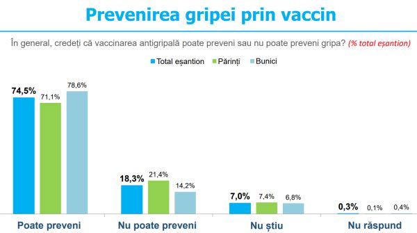 Conform studiului "Atitudinea părinților și bunicilor cu privire la vaccinarea antigripală a copiilor", trei sferturi dintre respondenți consideră că vaccinarea antigripală poate preveni gripa.