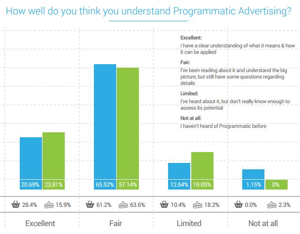 Desfasurata in perioada iulie – septembrie 2015, potrivit concluziilor studiului, 89% dintre respondenti sunt de parere ca Programmatic Advertising a devenit o parte «dominanta si importanta a publicitatii online», iar unul din trei advertiseri considera ca cel mai mare beneficiu al publicitatii de tip Programmatic este o targetare mult mai buna a audientei.