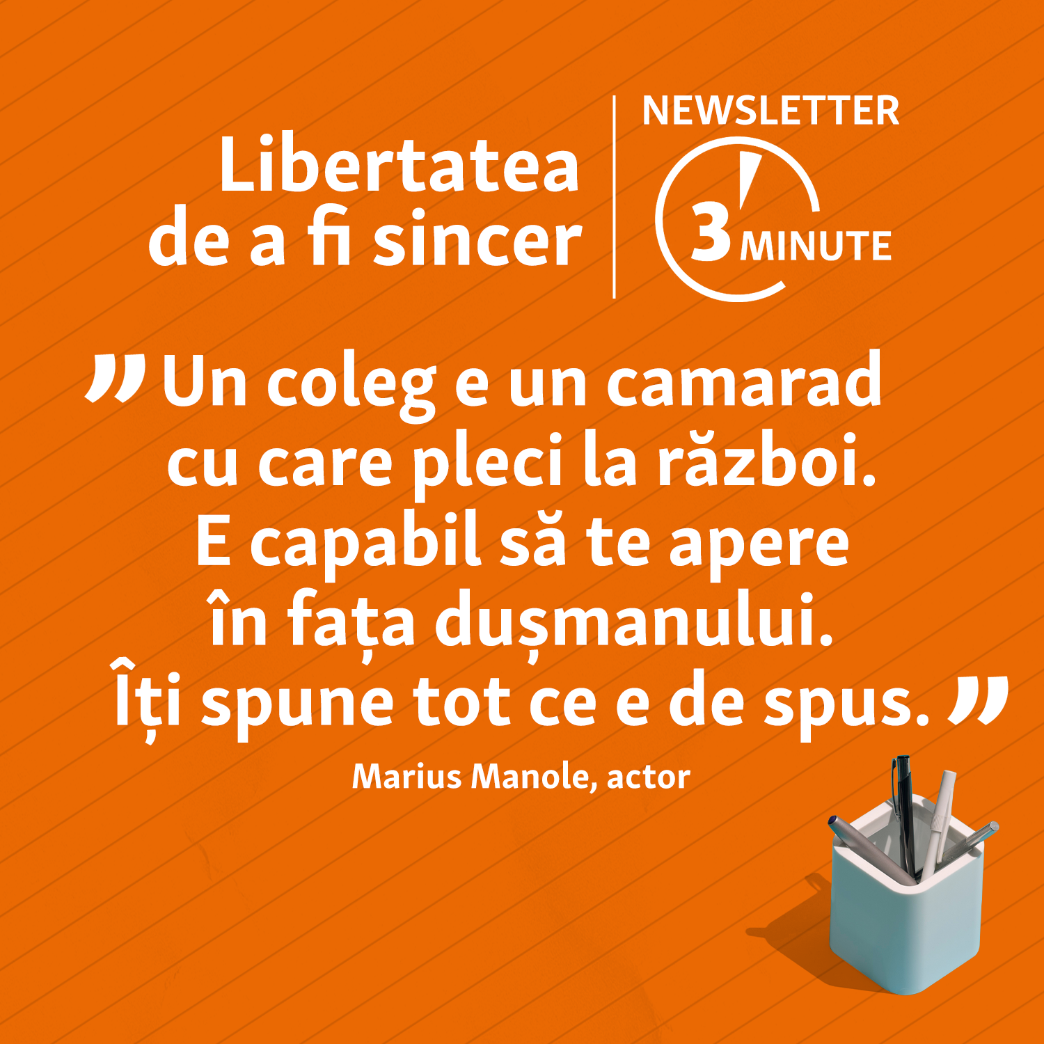 Cu aceasta provocare a inceput campania de comunicare a newsletter-ului „3 MINUTE” al Europa Libera Romania, o redactie care isi asuma ea insasi libertatea de a fi sincera. Timp de o luna, oameni obisnuiti, alaturi de 12 personalitati din Romania au impartasit onest propriile povesti si experiente in relatie cu a spune adevarul.